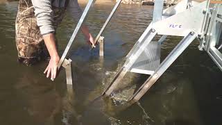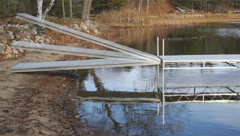 The perfect approach to your dock, as well as the most cost-effective way to add length. The shore-end dock ramp attaches using our exclusive dock hook. It pivots up and down to match any shoreline height and easily detaches for seasonal storage. |