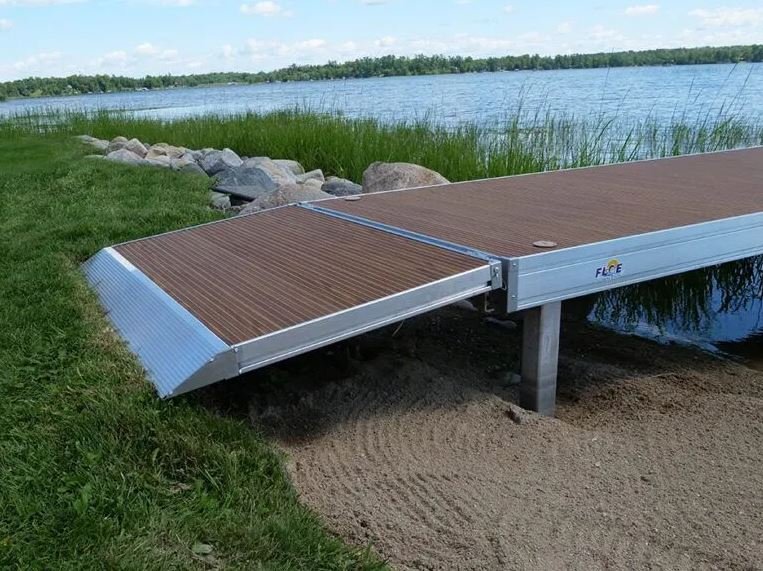 Shore-End Dock Ramps The perfect approach to your dock, as well as the most cost-effective way to add length. The shore-end ramp attaches using a Quick Attach bracket and FLOE’s exclusive dock hook. It pivots up and down and easily detaches for seasonal storage. |