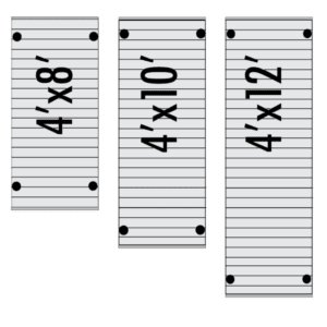 A 4′ x 8′ Section can be used on the side of a straight section to create an 8′ x 8′ sundeck. An 8′ x 8′ section used on the side of a straight section creates an 8′ x 12′ sundeck.
