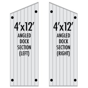 Great for making a jog in the walkway and for making angled slips. Connect two angled docks together to form a 45o angle. Available in 4’X12′ Quick Attach Sectional. |