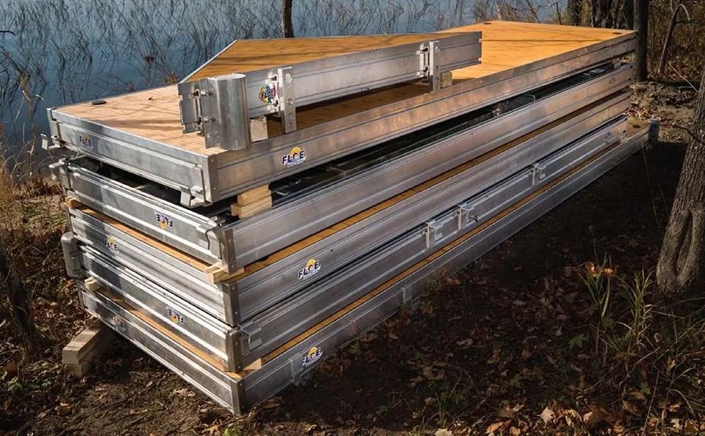 Removable Sectional Docks FLOE Sectional Docks have a sturdy, lightweight design with fast and easy assembly and breakdown with no tools required. Once the legs are removed, they store in limited space on your shoreline in the offseason. |