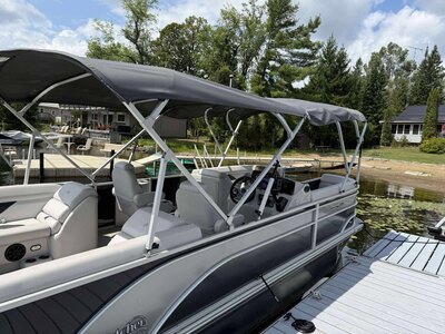 CLEAN USED TRITOON! Equipped with a Yamaha F200 with warranty until 10/1/2026, double bimini top, tandem axle galvanized trailerLowrance Hook series...