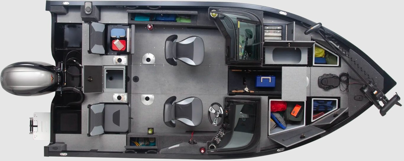 RUGGED STRENGTH . ANGLER CONFIDENCEBuilt to tackle big water. Built with a reinforced hull, the Angler V delivers the strength and stability to take you anywhere. The redesigned console puts all controls within easy reach, giving the captain command of the vessel. |