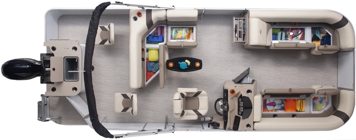 Built to satisfy both anglers and families. A stern fishing station gives you room to cast with two fish seats and a livewell, while bow couches provide a comfortable space to lounge.